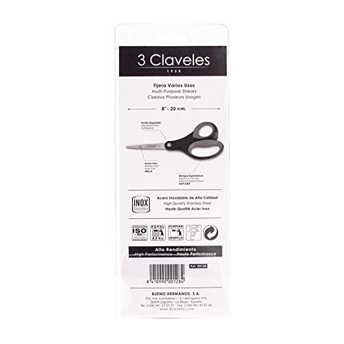 3 Claveles Tijera Multiusos Acero Inoxidable, Mango TPR Soft de Color y, Rojo/Negro