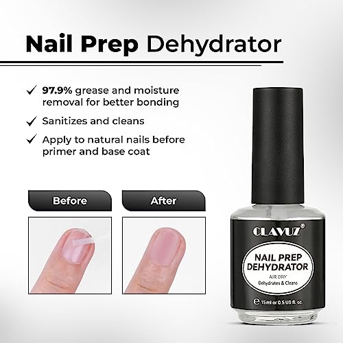 CLAVUZ Nail Prep Disidratante e Nail Primer Kit, senza acidi Pro Bonder per Legante Disidratato Naturale per Polvere Acrilica e Smalto per Unghie Nail Binder 15ml