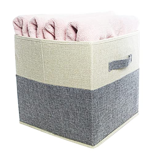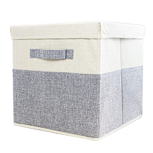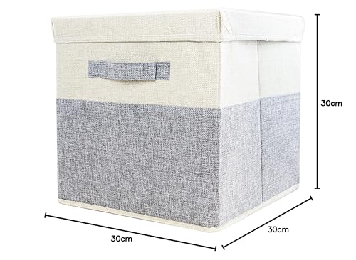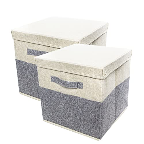 Clay Roberts Cubi portaoggetti con coperchi, scatole pieghevoli, confezione da 2, set di cestini portaoggetti in tessuto per contenitori, case e uffici - 30 cm x 30 cm x 30 cm (grigio e beige)