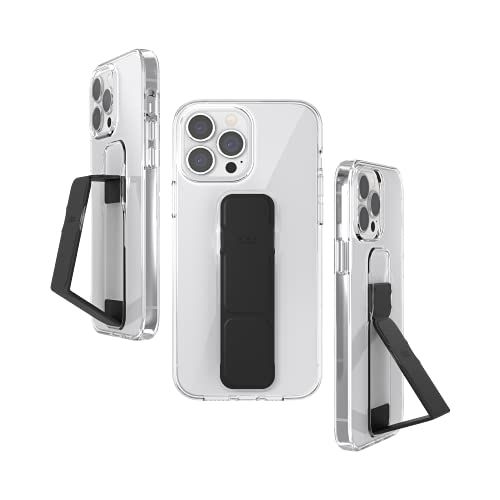 CLCKR Custodie Compatibile con iPhone 13 Pro Max, 6.7 Pollici, Impugnatura per Cellulare e Supporto Estensibile, Supporto per Telefono, Cover Protettiva con Angoli Rialzati, Nero Trasparente