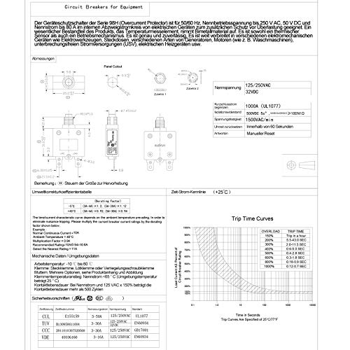 CLDIY - Interruttore di protezione termico, serie 98, 15 A, 125/250 VAC, per interruttore di sicurezza, con morsetti di collegamento rapido e copertura dei tasti impermeabile 32 VDC, 2 pezzi