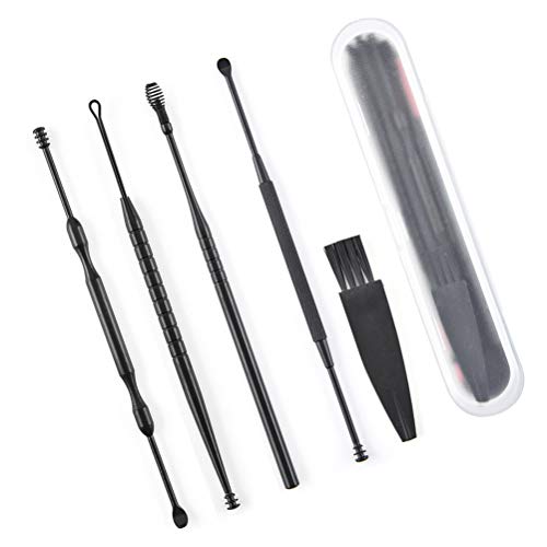 Ear Clean Tool - Pala rotante per orecchie, 5 pezzi, colore nero