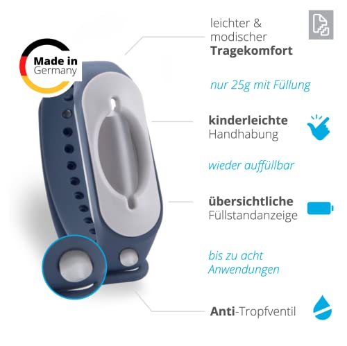 Cleanbrace CBF18 Confezione da 2 braccialetti disinfettanti Cleanbrace (grigio e blu scuro) | Disinfezione delle mani per gli spostamenti | incluso ricarica