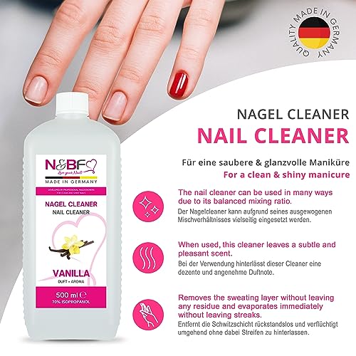 Cleaner per unghie al profumo di vaniglia 570 ml+rotolo di salviette pad da 1.000 pezzi-Pulitore Nail utilizzato per pulire e sgrassare in qualità da studio