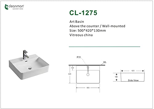 Cleanman 1275 lavabo ha un design elegante e moderno che migliora l'aspetto del vostro bagno. Il lavabo può essere utilizzato come lavabo per mobili o come lavabo a parete