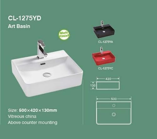 CLEANMAN Lavabo sospeso con troppopieno e foro per rubinetto, in ceramica, 500 x 420 x 130 mm