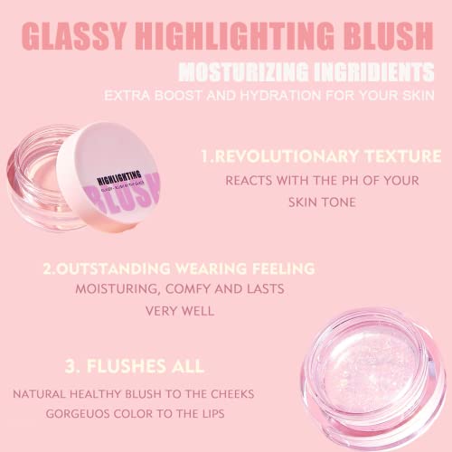Clear Fard Color Changing, Trasparente Blush Rouge, Color Changing Blush Rouge Color Changing Blusher, Multi Use Impermeabile Color Changing Blusher Cream per Guancia & Labbra Blush Essence(02-Glitter