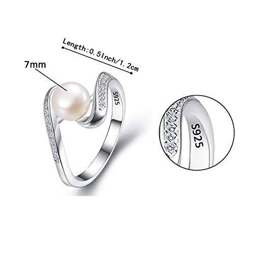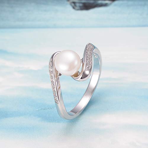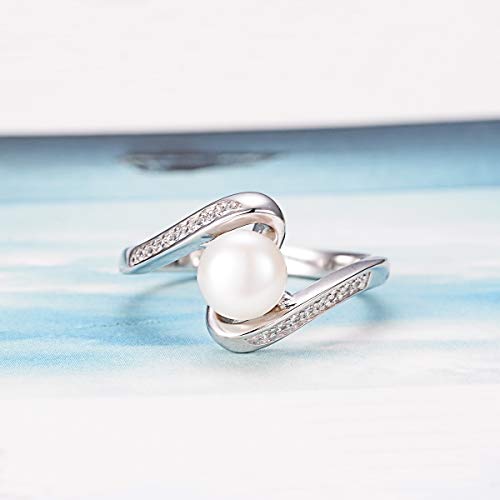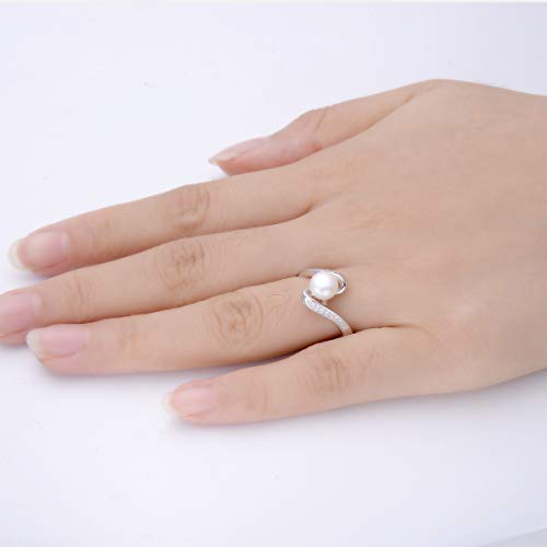 Clearine Anello Donna Argento da Sposa CZ 7MM Crema Coltivata d'acqua dolce perla Nastro Anello Cocktail Ispirato Trasparente