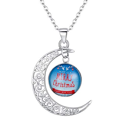 Clearine Collana 925 Argento Collana per donna" Natale " Galassia & Mezzaluna Luna Perle di vetro Collana pendente Blu