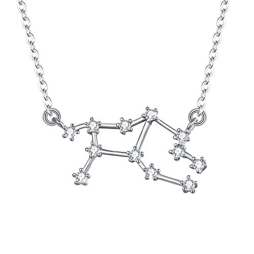 Clearine Collana 925 Argento Collana per donna - Vergine Costellazione Collana zodiacoo 12 Oroscopo Astrologia zircone Collana pendente Regalo di compleanno Trasparente