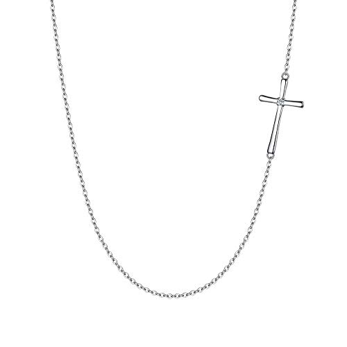 Clearine - Collana girocollo in argento Sterling 925 con ciondolo a forma di croce laterale
