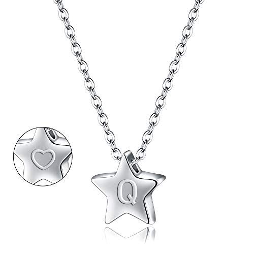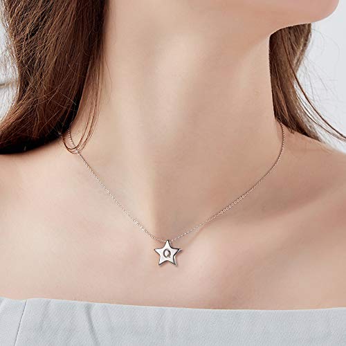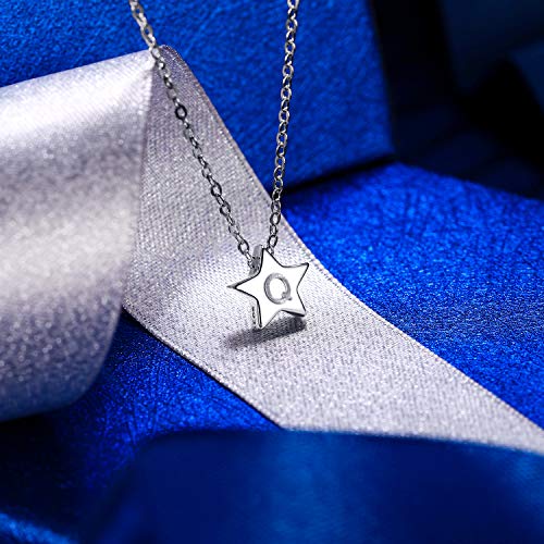 Clearine Collana Ragazza 925 Argento Minuscolo Delicato Pendente Pentagramma Stella Lettera Q Collana Trasparente Regalo per donne