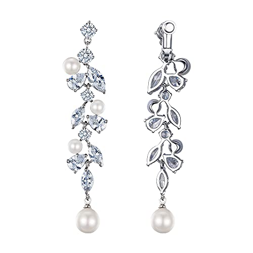 Clearine Orecchini a clip con zirconi simulati perla a goccia a goccia, orecchini a clip per matrimonio sposa, Zirconia cubica Perla simulata zirconi, Zirconia cubica