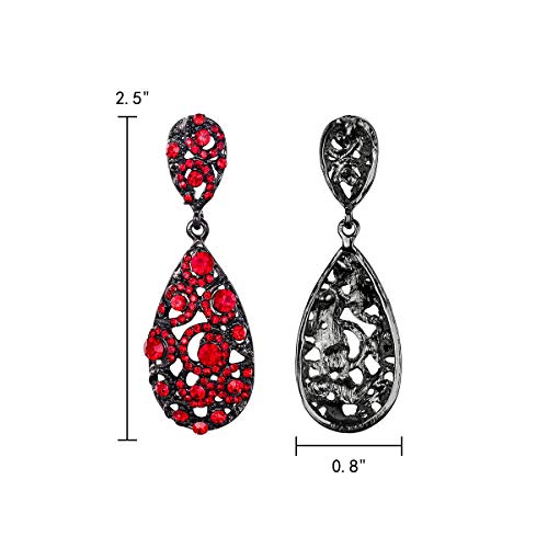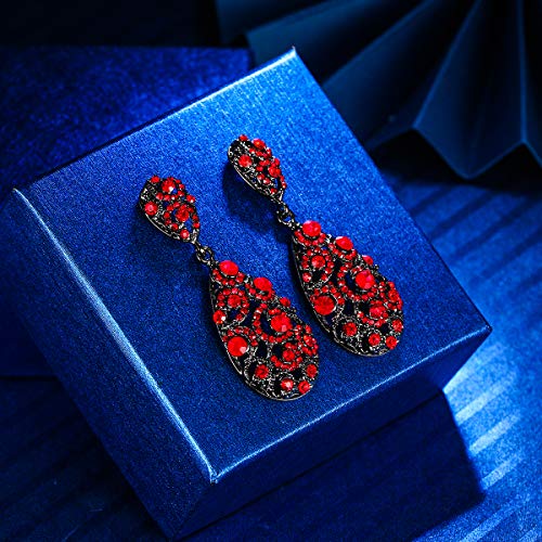 Clearine Orecchini Donna Matrimonio Cerimonia Cristallo Rhinestone lacrima vuoto-fuori Cheelier Orecchini pendenti a goccia regalo per donne Rosso Nero-fondo