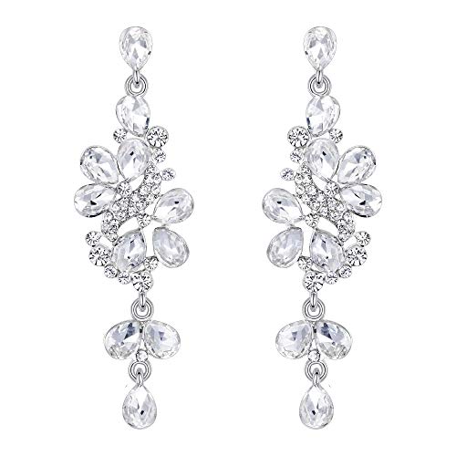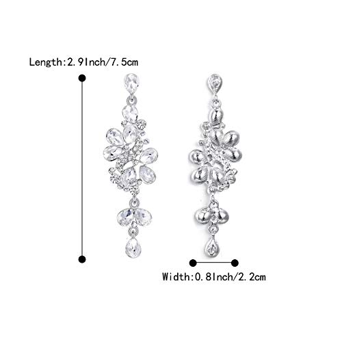 Clearine Orecchini donna Matrimonio nuziale Cristallo Grappolo a goccia foglie Orecchini pendente Trasparente Argento-fondo