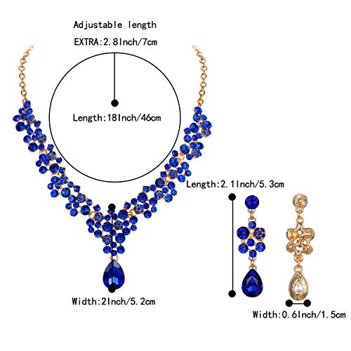 Clearine Parure Gioielli Donna Nozze Nuziale Set di Gioielli per Donna Cristallo Bling Rhinestone Perline Grappolo Statement Collana Orecchini Pendenti Royal Blu Color Oro-Fondo