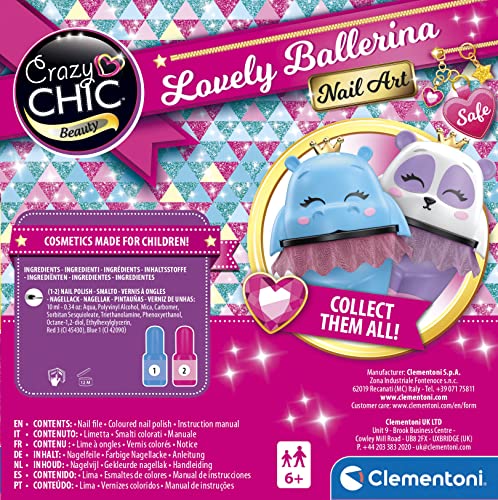 Clementoni - 18694 - Crazy Chic - Lovely Ballerina - Nail Art, Kit Unghie, Set Unghie Bambina 6 Anni+, smalti Decora Unghie, Trousse con smalti, Regalo per Manicure, Gioco Creativo