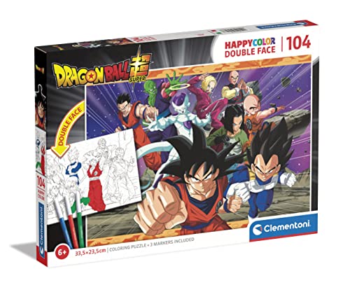 Clementoni - 25728 - Happy Color Double Face - Dragonball - 104 pezzi - Made in Italy, puzzle bambini 6 anni, puzzle da colorare (pennarelli inclusi), puzzle Spiderman, puzzle cartoni animati