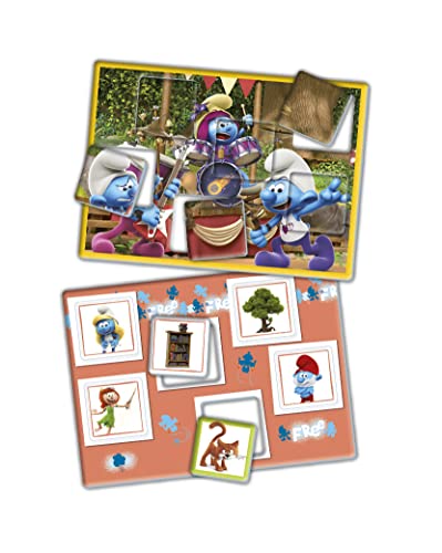Clementoni Educational Games-2 in 1 The Smurfs-Gioco Educativo 3 Anni (Italiano, Inglese, Francese, Tedesco, Spagnolo, Olandese E Polacco), Made in Italy, Multicolore, 18285, Esclusivo Amazon