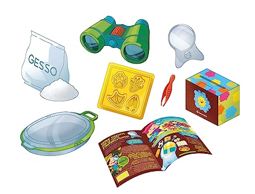 CONTENUTO DEL GIOCO: un binocolo da birdwatcher, uno speciale visore per insetti, stampini in gesso per ricreare impronte di animali e carte esplorazione con tante informazioni sulla natura e manuale scientifico.