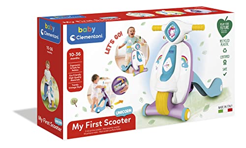Clementoni- My Unicorn First Step Scooter-Gioco Prima Infanzia 9 Mesi (Italiano, Inglese, Francese, Tedesco, Spagnolo, Olandese E Polacco), Made in Italy, Multicolore, 80515