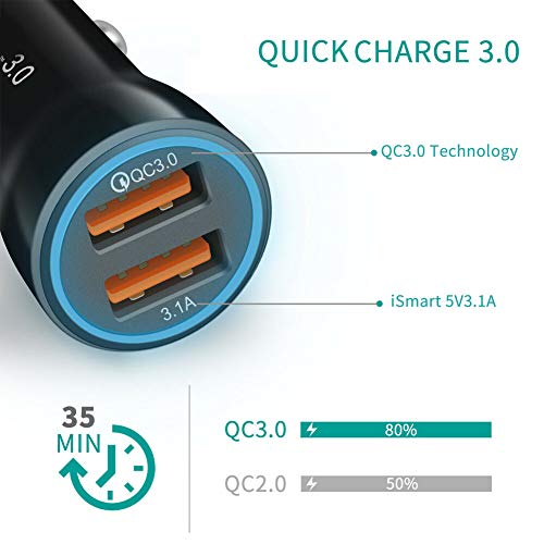 Clenp Caricabatteria da Auto, QC3.0 Ricarica Rapida 3.1A Caricabatteria da Auto Doppio USB Adattatore di Alimentazione per Accendisigari Nero Taglia Unica