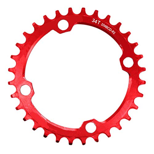 Clenp Corona per Bicicletta, 32T / 34T / 36T / 38T 104BCD MTB Bike Round Narrow Wide Chainring Rosso 34
