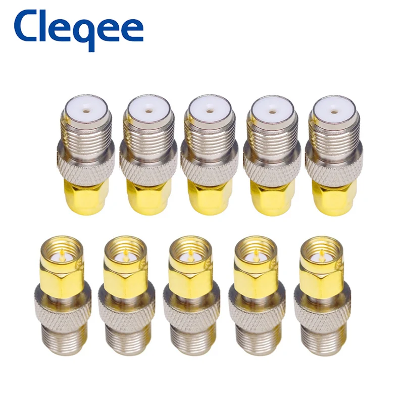 Cleqee 10PCS SMA Male to F Female RF Coaxial Adapter F Type Jack to SMA Plug Convertor RF Coax Straight Connector Gold plated