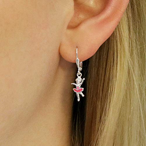 Clever gioielli corifenidi orecchini fatti a mano 28 mm piccola ballerina 12 mm Rosa e Rosa laccato lucido in argento 925 per bambini