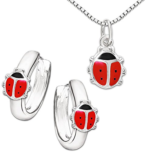 CLEVER SCHMUCK - Set ciondolo coccinella con piedini nero rosso, orecchini a cerchio da bambina, 10 mm. e collana Venezia 40 cm in argento 925