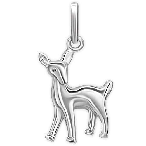 Collana e ciondolo a forma di cerbiatto in argento sterling 925 lucido e con timbro di autenticità