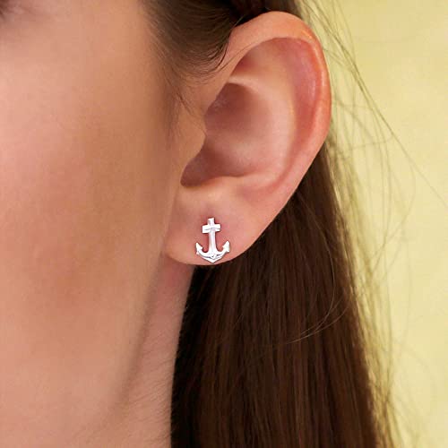 Orecchini a forma di ancora realizzati in argento sterling 925, con timbro di autenticità e circa 0,77 g.