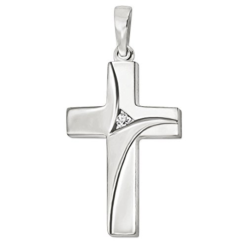 CLEVER SCHMUCK -Set ciondolo in argento Croce da 23 mm con un tenditore di-zirconi, opaco e lucido, forma curva e catena Venezia 40 cm in argento 925, Zirconia cubica