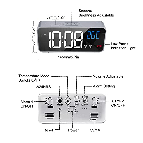 【Display a LED di Grandi Dimensioni】questa sveglia digitale è dotata di un ampio display a specchio LED da 5,6 pollici, che ne facilita la lettura;
