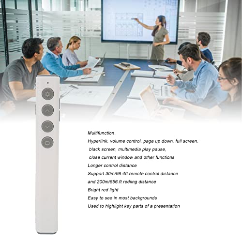 Lungo raggio: il telecomando del presentatore wireless supporta una distanza di controllo remoto di 30 m/98,4 piedi e una distanza di rediing di 200 m/656,2 piedi. Luce rossa brillante, facile da vedere nella maggior parte degli sfondi