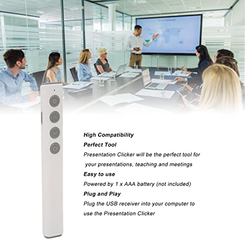 Clicker di Presentazione, Telecomando PowerPoint Wireless, Clicker USB PowerPoint Presentazione Puntatore del Telecomando Slide Advancer per Mac, Computer, Laptop (Bianco)