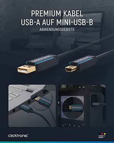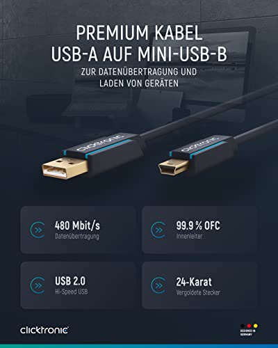 Clicktronic 70126 Cavo USB Tipo A - USB Tipo Mini B, 1 m Lunghezza del Cavo