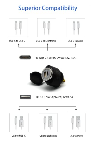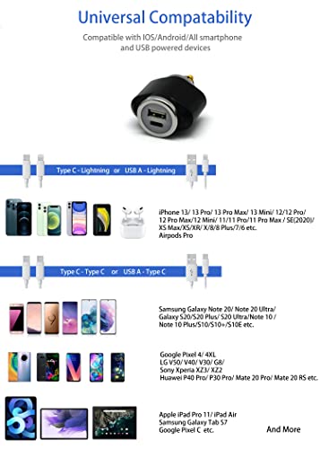 Due porte USB intelligenti e potenti: sia la porta USB-C PD da 18 W che la porta USB-A Quick Charge 3.0 da 18 W, consentono agli utenti di caricare contemporaneamente più dispositivi in tempi record, con una potenza massima totale di 6 A/36 W (ingresso: 12-24 V), senza sovraccaricare e rallentare. Perfetto per dispositivi Android e iOS!