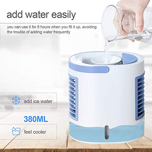 Design eccellente: questo condizionatore portatile è il modello più recente del 2019. Prima di progettare il prodotto, analizziamo i problemi dei prodotti precedenti causati da una grande quantità di dati, come ad esempio ad esempio nessun raffreddamento, perdite d'acqua, uso scomodo, ricarica frequente di acqua, per questi problemi abbiamo soluzioni e miglioramenti, questo condizionatore originale portatile ha un serbatoio dell'acqua da 380 ml, integrato in una calda luce notturna, 3 lime per impostare il freddo.