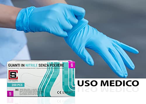 CLINISAFE 200 GUANTI MONOUSO IN NITRILE, SENZA TALCO, PER USO MEDICO E LABORATORIO, AZZURRI, TAGLIA S