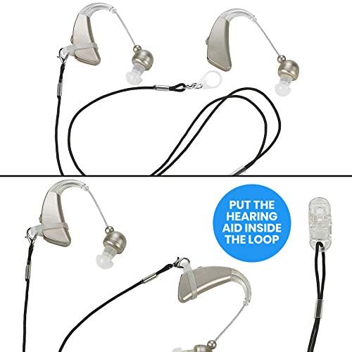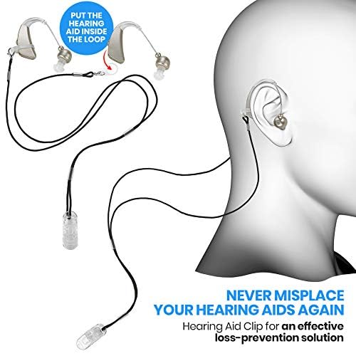Clip per apparecchi acustici - Supporto di protezione con cordino anti perdita - Corda con loop e clip e clip di sicurezza Ideale per apparecchi acustici dietro l'orecchio e amplificatori