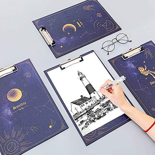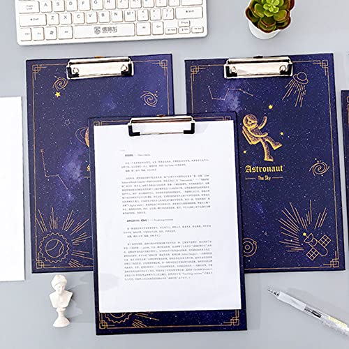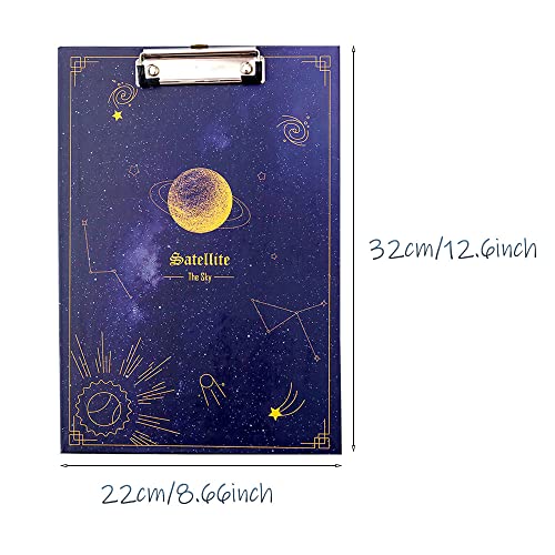 Clip Basso Profilo, Portablocco, Raccoglitore di Moduli, con Appeso Buca, Cielo Stellato Creativo, Portatile e Durevole, per Studenti, Insegnanti e Bambini (Satellitare)