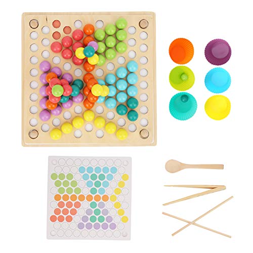 【Come si gioca】 I bambini possono mettere un cartone preferito nel vassoio di legno, quindi utilizzare le bacchette o le clip per agganciare le palline al cartone secondo i modelli e il colore sul cartone, quindi possono essere assemblati in un bellissimo immagine. Riconoscimento del colore Interazione .