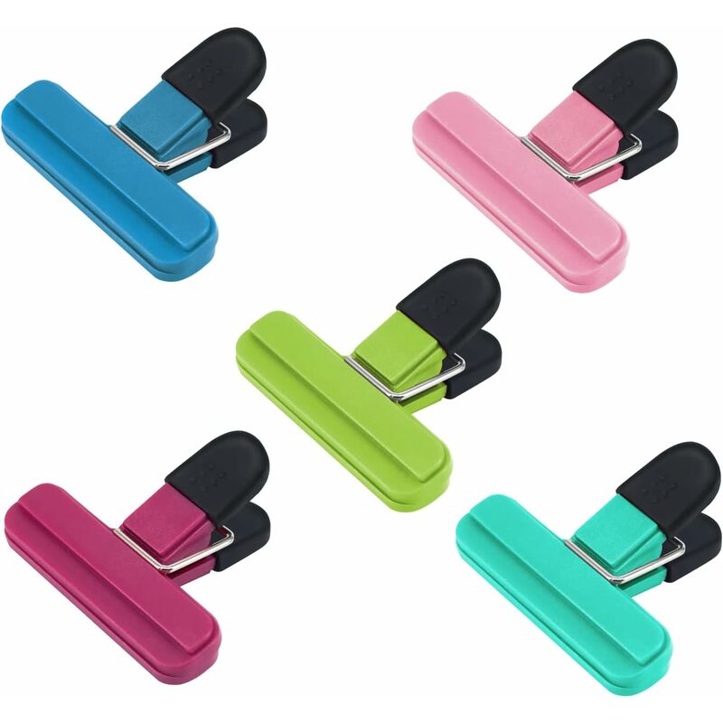 Materiale resistente: la clip per alimenti è realizzata in plastica e gomma resistenti. La clip può contenere più pagine senza problemi e non è facile da sfilare. Design pratico: la clip del sacchetto per alimenti ha un morbido manico antiscivolo e denti a coste, che possono fissare in sicurezza gli oggetti e impedire che cibo e frutta entrino nell'aria Facilità di rilascio e presa: la nostra clip per borsa ha una cerniera a molla pesante per fornire la giusta pressione per mantenere la borsa per alimenti sigillata e fresca senza essere difficile da spremere e allentare. Risparmio di spazio: la nostra borsa per snack occupa solo un po' di spazio per riporla. La forcina ha 5 colori diversi, che aggiungeranno sicuramente un tocco di colore e divertimento alla tua casa Ampia applicazione: queste borse possono essere utilizzate per molti altri articoli, tra cui borse, cibo, frutta, carta, ganci per scomparti o uffici domestici che devono essere sistemati.