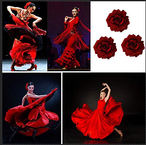 Applicabile - Fermaglio per capelli in tessuto fatto a mano, spilla in rosa rossa con petali in stoffa a strati, ideale per matrimoni, spiaggia al mare, viaggi, fotografia, festival, musica o vita quotidiana;