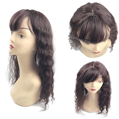 Clip per capelli ondulati ad acqua, parte centrale, con frangia mossa (55 cm, marrone scuro)