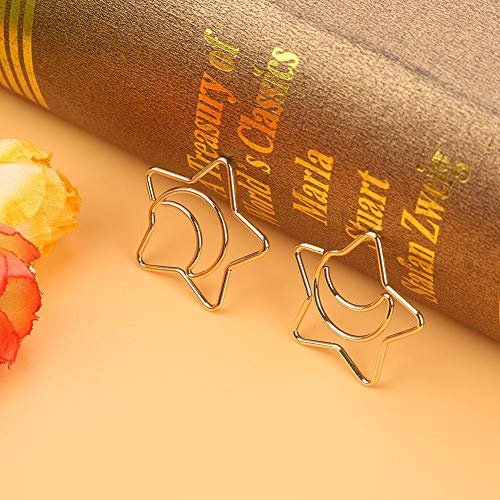 Clip di carta Alinory, 10 pezzi Clip placcate in plastica con placcatura a stella Luna Clip di carta Segnalibro divertente Clip per marcatura Oro