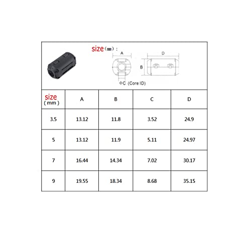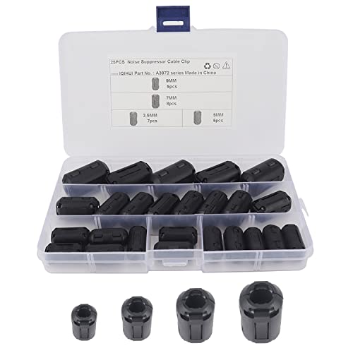 JZK 25 x clip per cavo con clip in ferrite, con attacco RFI EMI, diametro interno 3,5 mm, 5 mm, 7 mm, 9 mm, per cavo USB, cavo mouse e cavo per tastiera