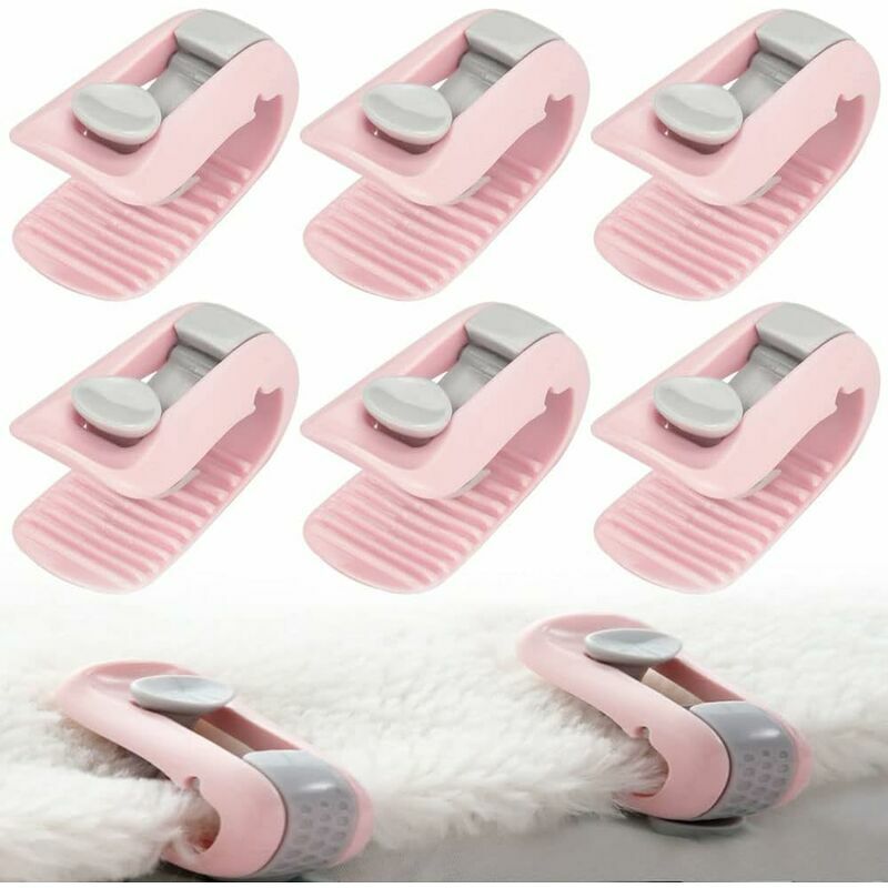 Confezione da 6 chiusure per lenzuola - Ideali per tenere in posizione copripiumini e lenzuola con angoli. Caratteristiche: Queste clip per copripiumino sono adatte per trapunte invernali, trapunte estive, tende, ecc. Il copripiumino si aggancia con il design a strisce antiscivolo e tiene saldamente la trapunta con grande attrito. Le pinzette di colore rosa sono realizzate in plastica resistente e delicata sulla pelle. Il passante altamente elastico è flessibile fino a 180°. Ci sono 6 supporti rosa con una scatola di immagazzinaggio. La scatola di immagazzinaggio può essere utilizzata per riporla dopo l'uso, il che è molto comodo per te. Non serve solo per fissare piumoni, ma anche per riporre calze, pigiami, biancheria intima, ecc. Caratteristiche: Materiale: plastica. Peso: 120 g. Colore: rosa. Quantità: 6 pezzi. Contenuto: 6 clip copripiumino 1 scatola portaoggetti.