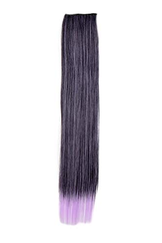 Ciocca di fibra sintetica di alta qualità con 2 Clip (pettine a clip) per il fissaggio. L'extension liscia è 45 cm/18''. Colore: nero e viola scuro con punte viola chiaro che vanno in fuori. Codice colore: 1BTTF2403A.